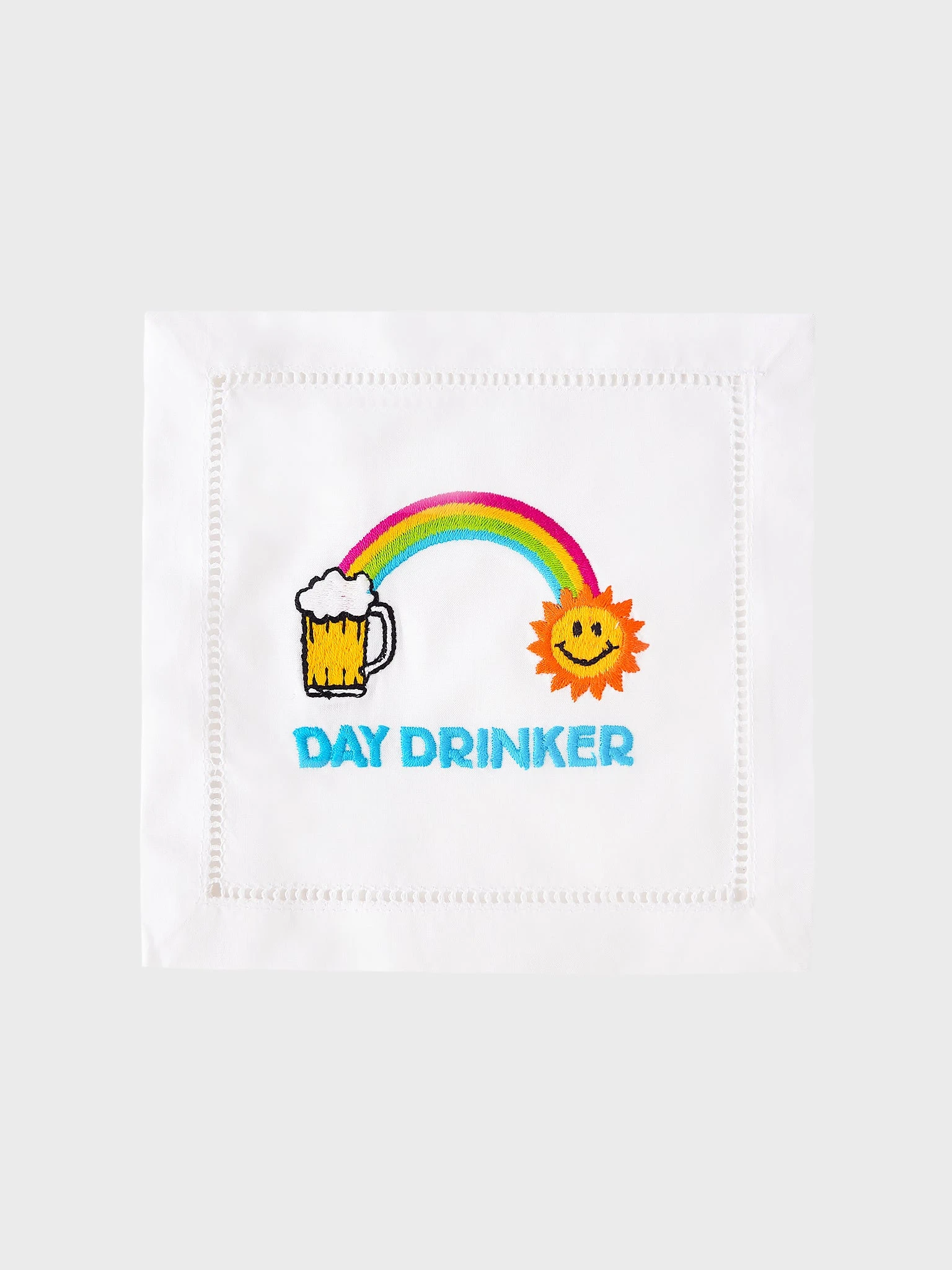 Set of four cocktail napkins with a colorful embroidered graphic.