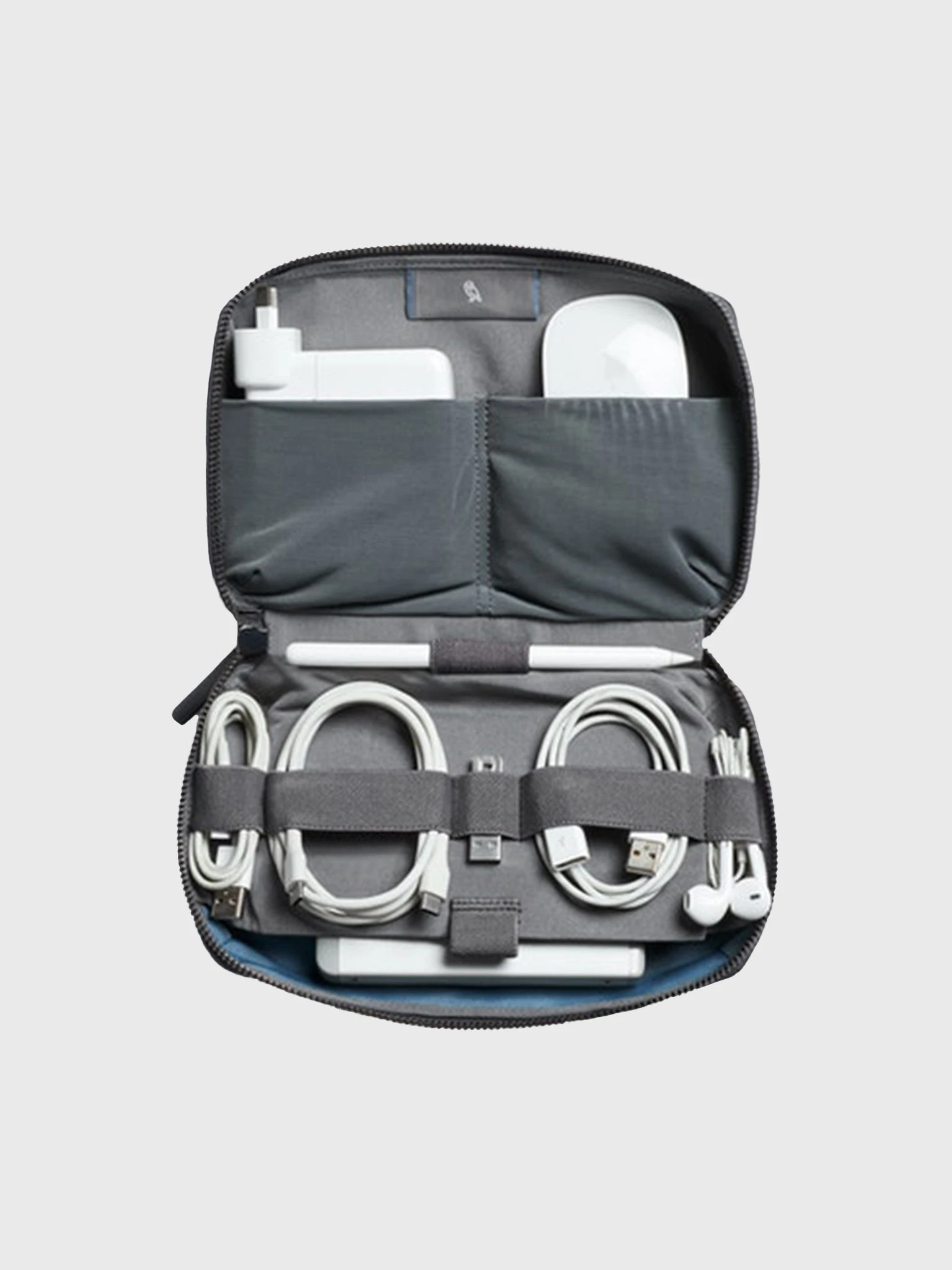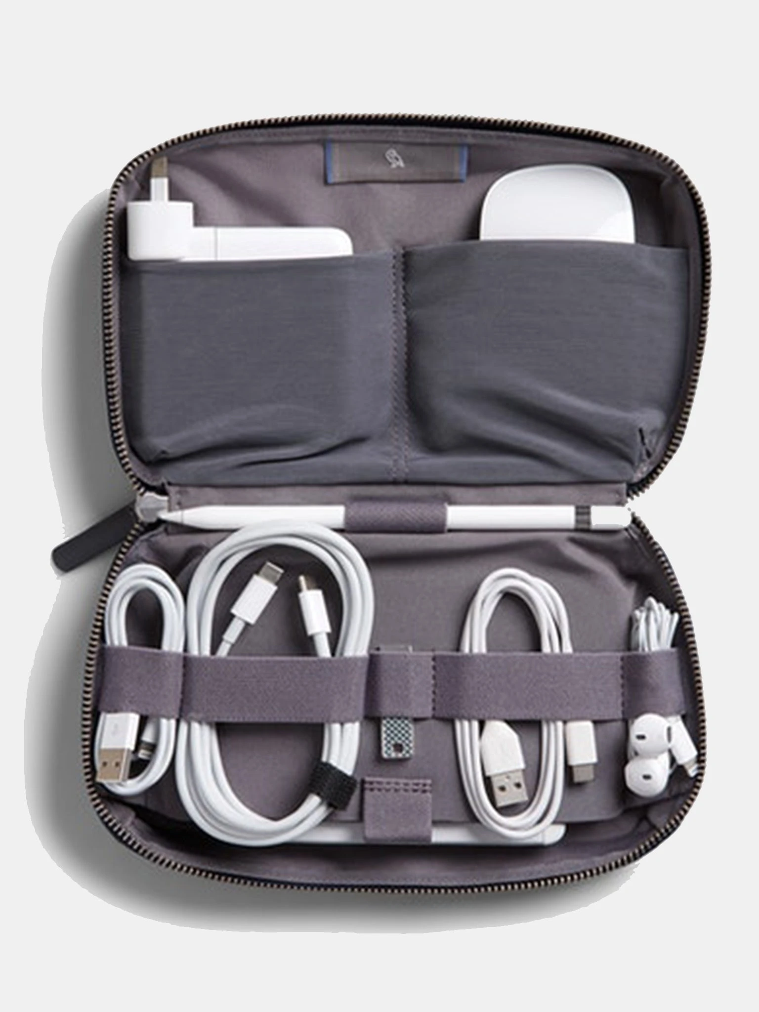 Softshell storage pouch for tech accessory organization.