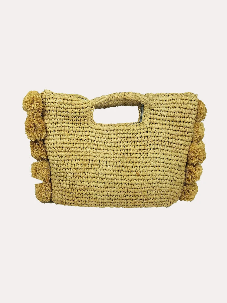 Bring a little pom-pom livin to your resort wear with the Hat Attack Handheld Satchel.