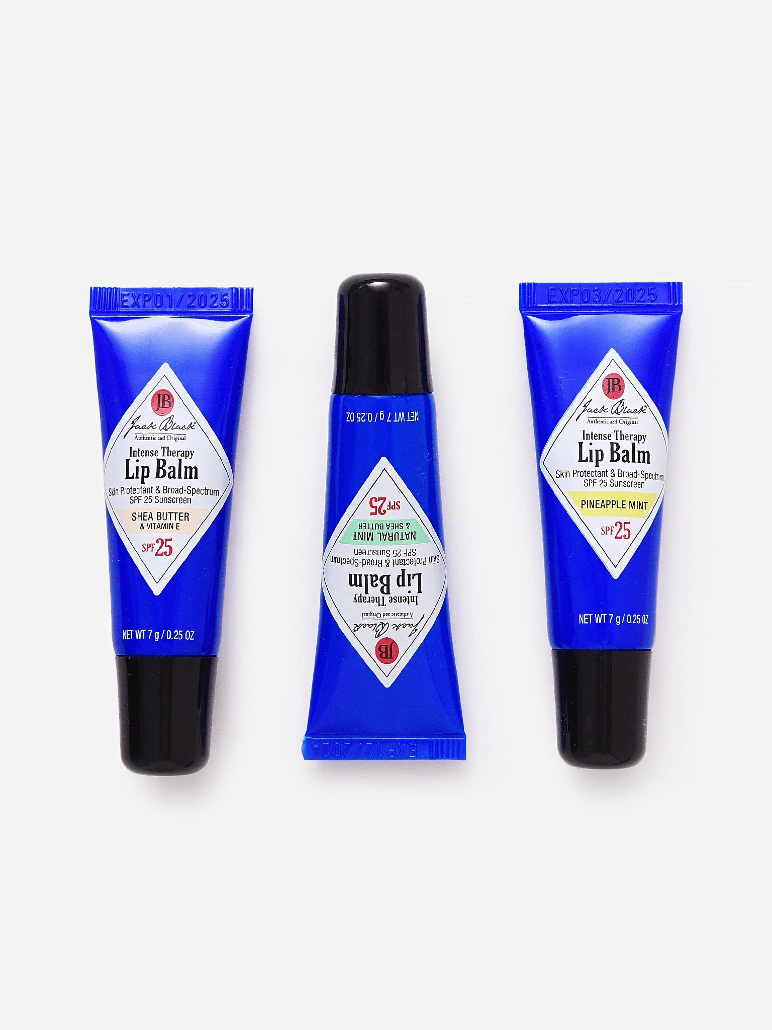 Set of three lip balms enriched with superior skin conditioners and antioxidants that soothe and relieve dry, chapped, and irritated lips.