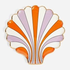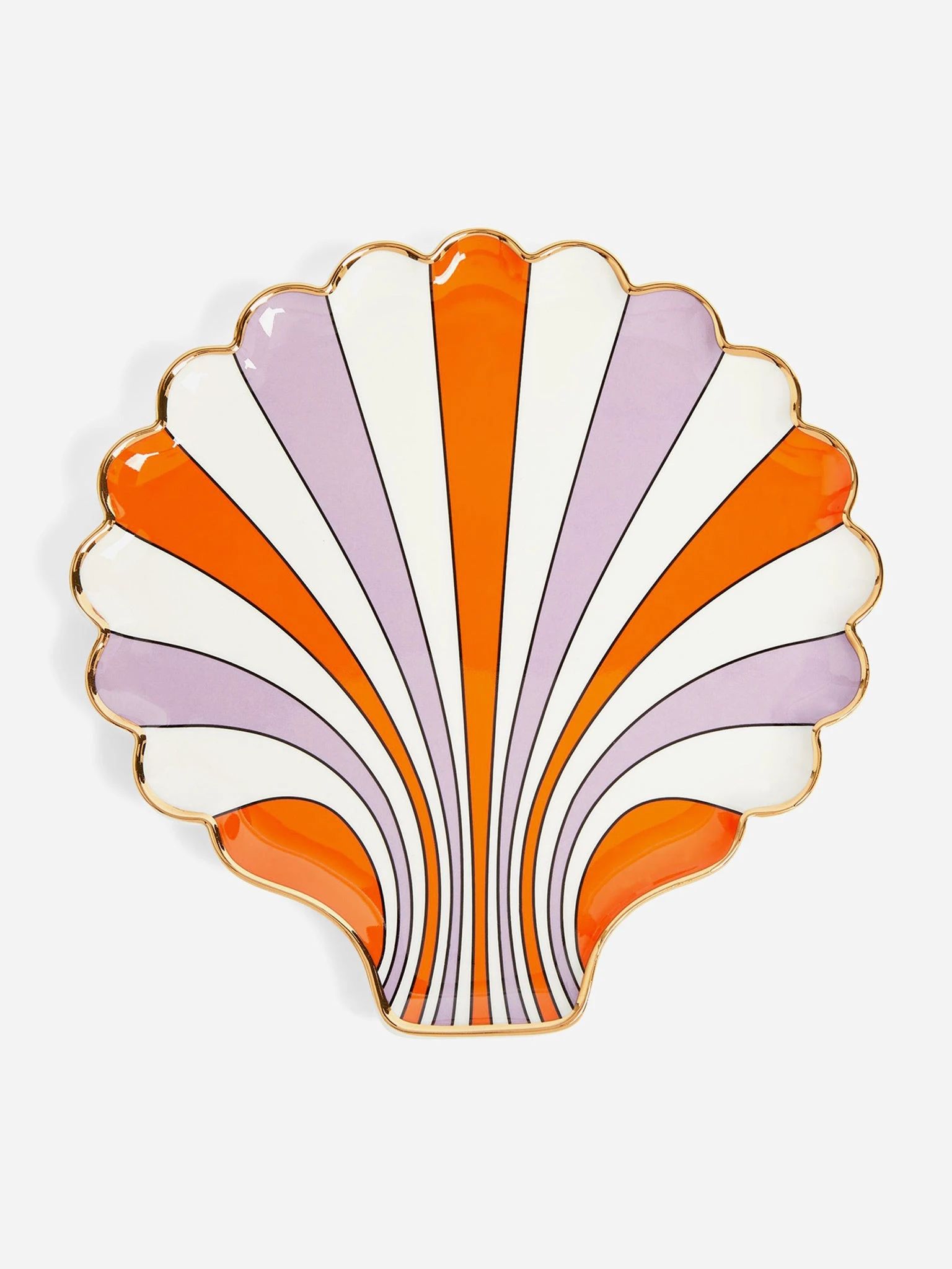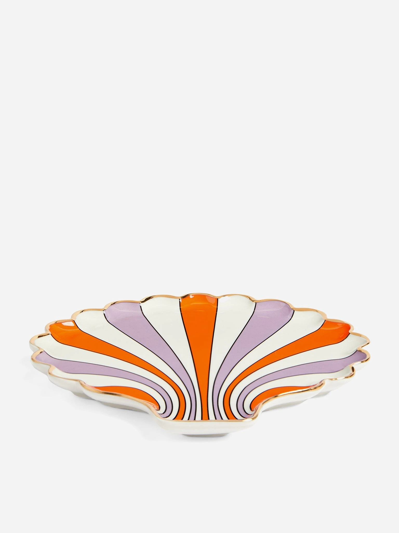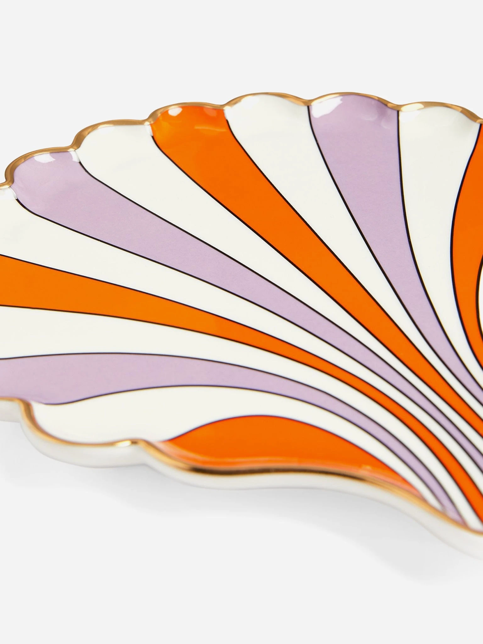 Porcelain trinket tray featuring a two-tone mod stripe pattern with gold accents.