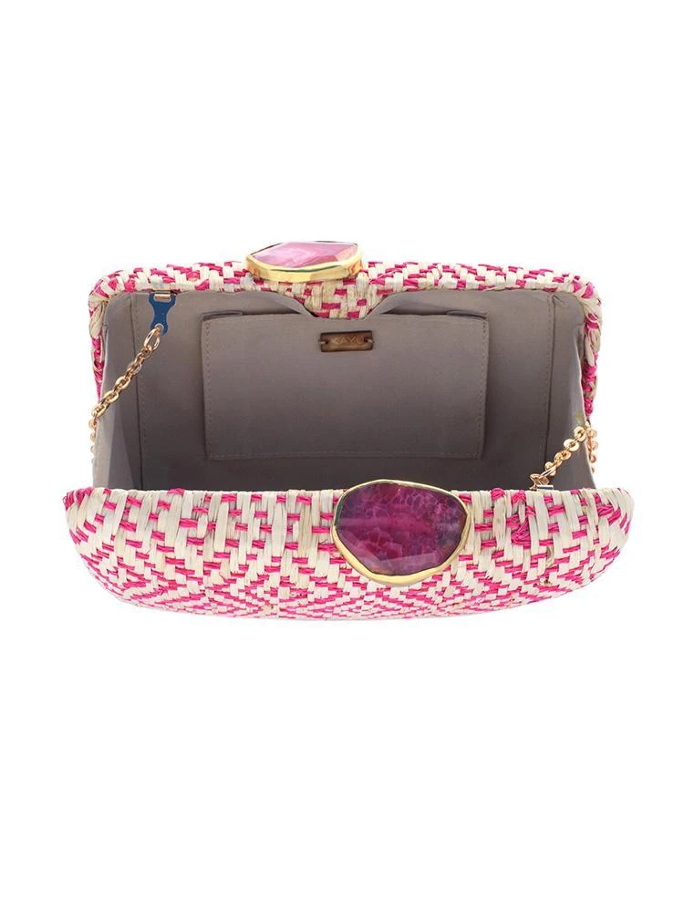 With a geometric patern and stone topper this Kayu Indie Clutch is right on trend