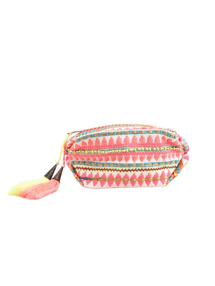 Stash you touch up makeup in the Love Stitch Hot Pink Jacquard Beaded Bag