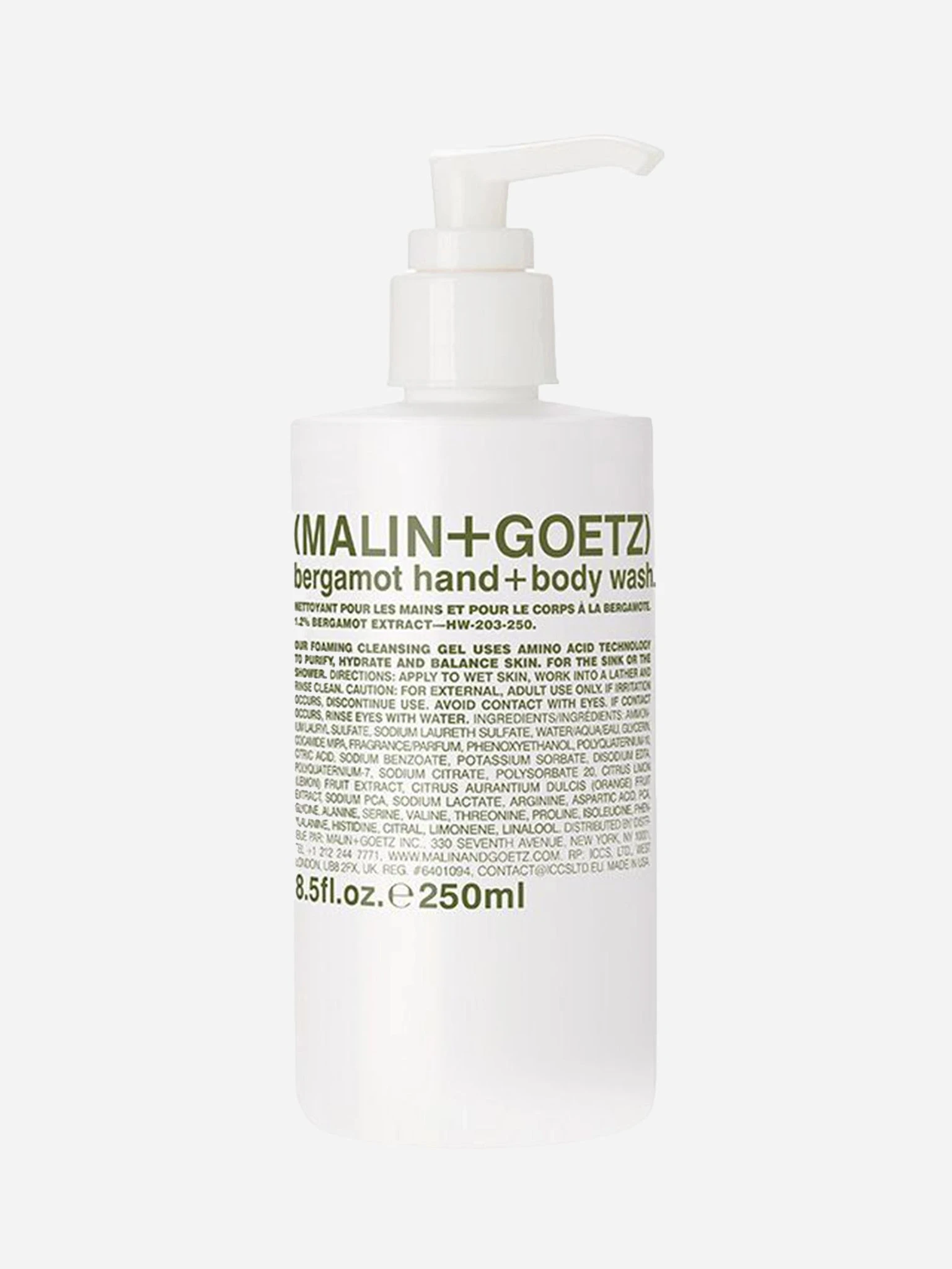 Wash away your day with the invigorating and refreshing Malin&Goetz Bergamot Hand + Body Wash.