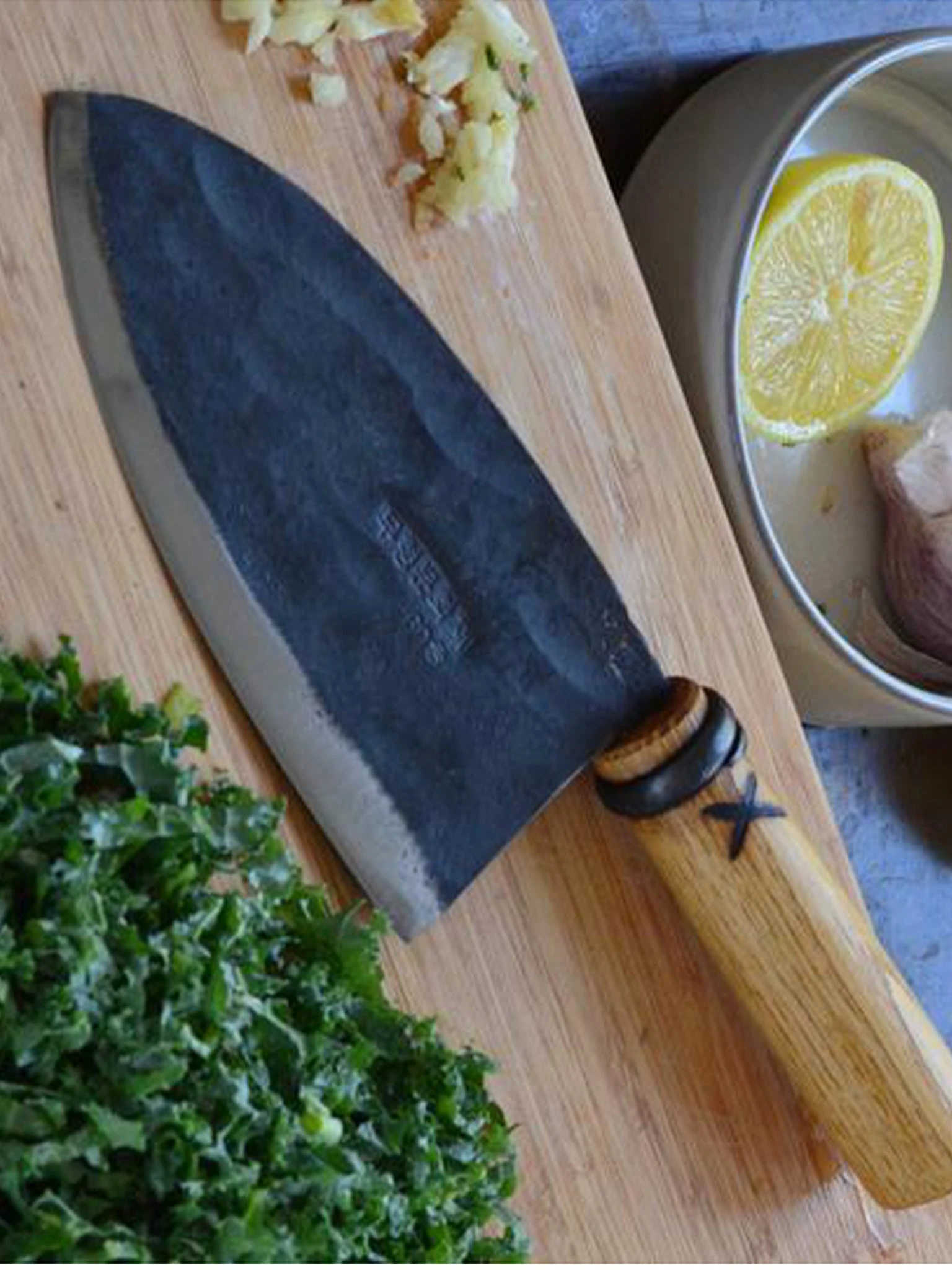 The Master Shin’s Anvil Large Chef’s Knife has a thick blade which makes it a weightier knife, meaning it does much of the work for you, making meal preparation a breeze.