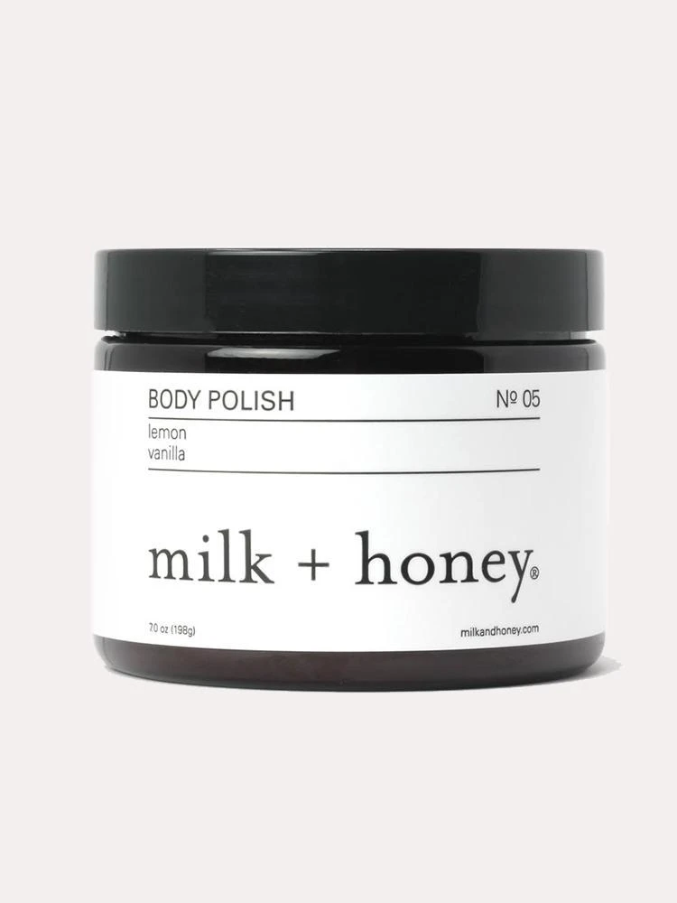 Get glowing skin with the exfoliating Milk + Honey Body Polish NO. 05 7 oz.