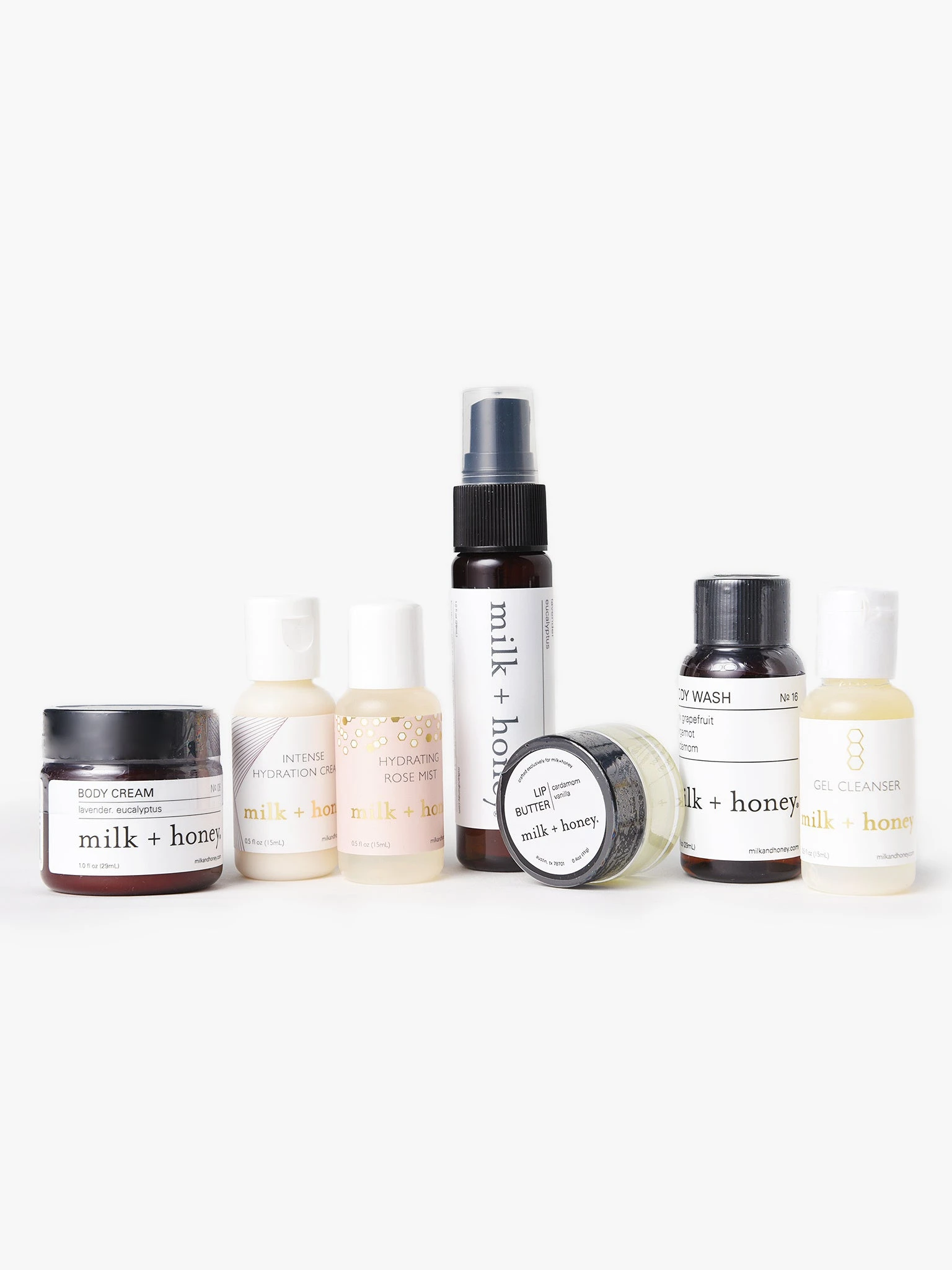 You can’t, no, you won’t leave on your trip without your me-time essentials in the Milk + Honey Travel Essentials Set.