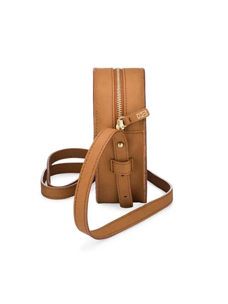 The Mini Moon crossbody is equipped with a zipper closure, an interior pocket, and an adjustable strap. For added versatility, remove the strap to transform it into a clutch or pouch.Â