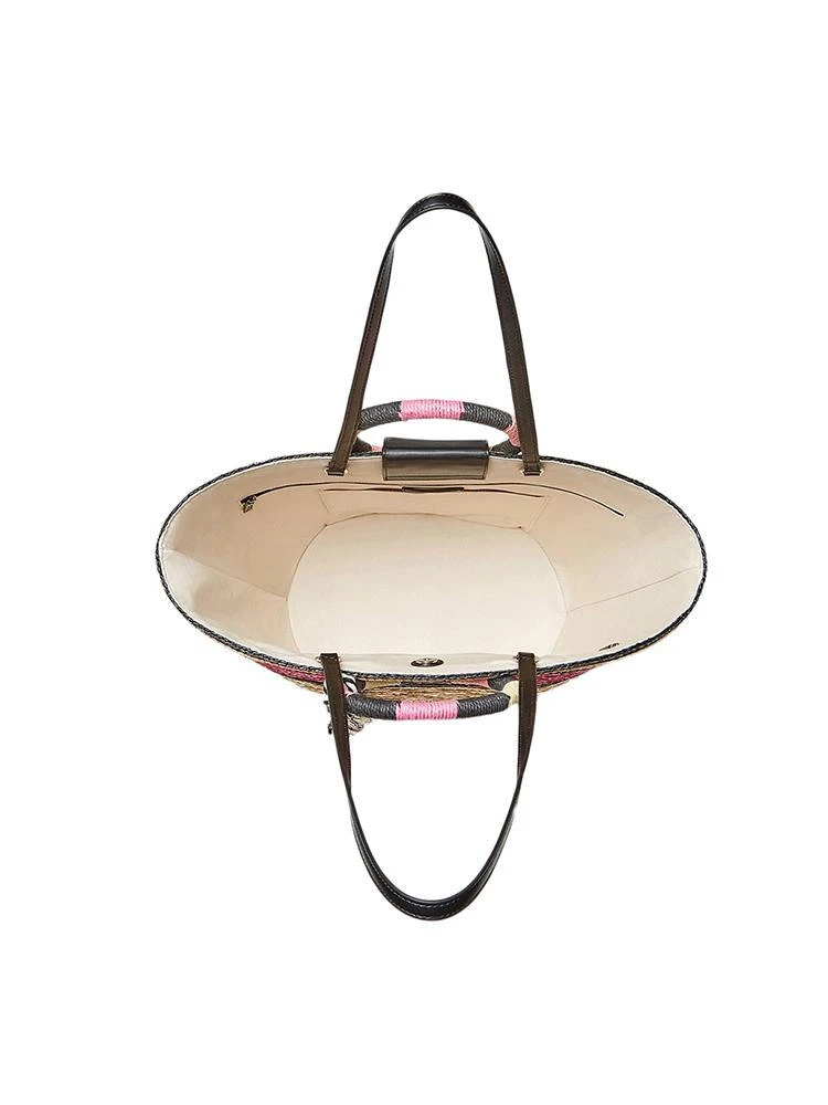 The Rebecca Minkoff Straw Tote is a perfect addition for those summer days with it’s woven straw material and snap closure.