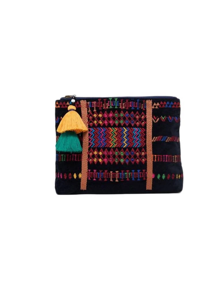 The embroidered Roberta Roller Rabbit Anouk Zipper Clutch adds a pop of color to your look.
