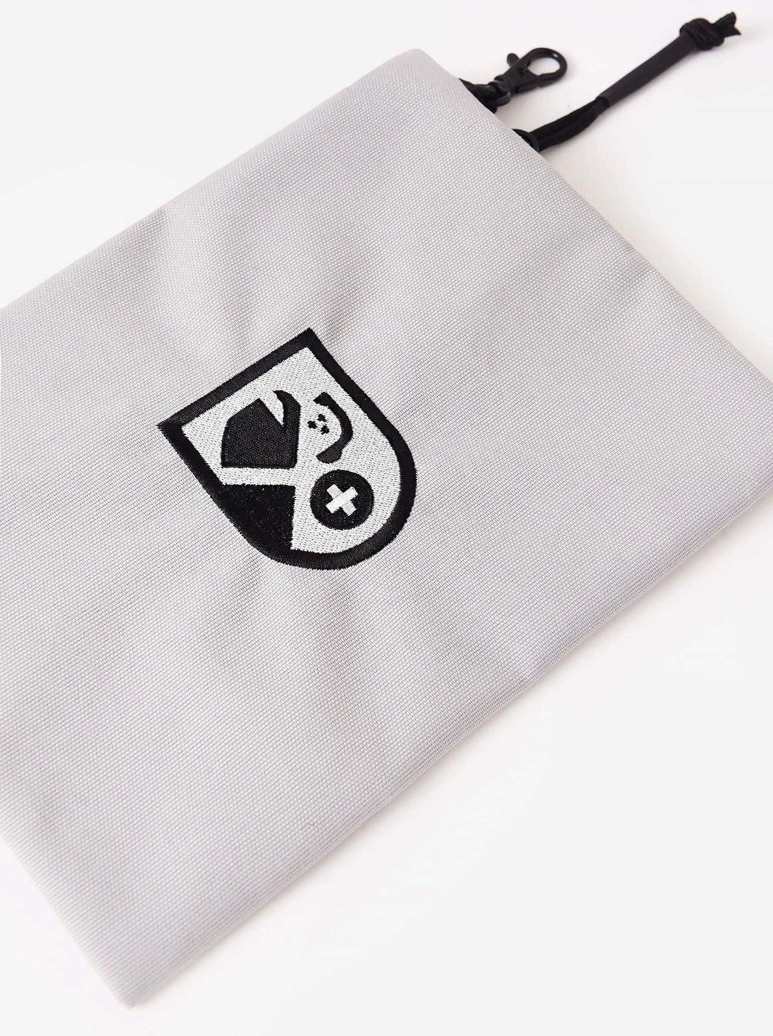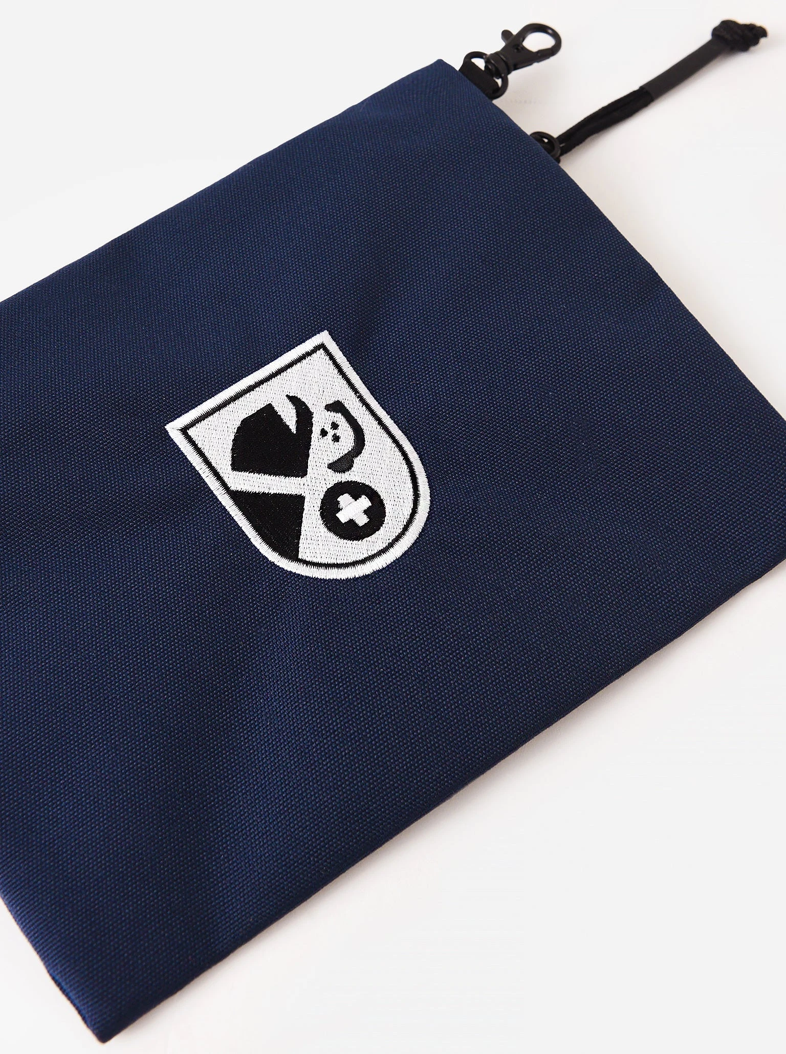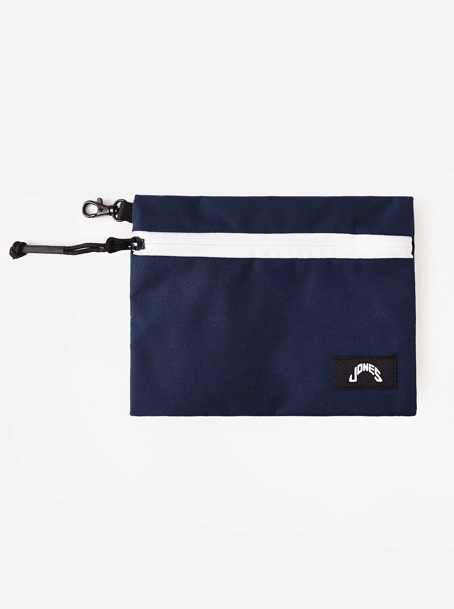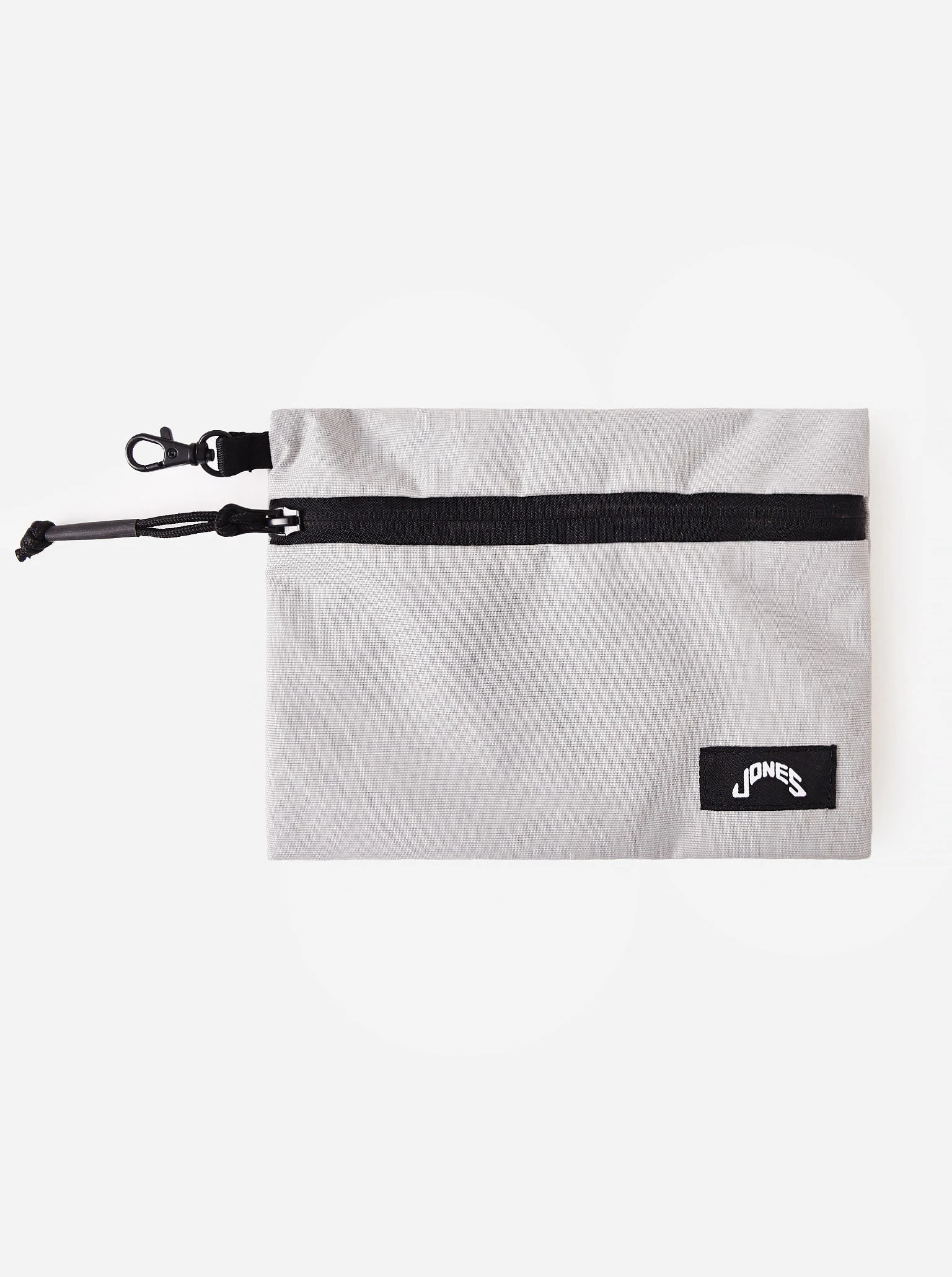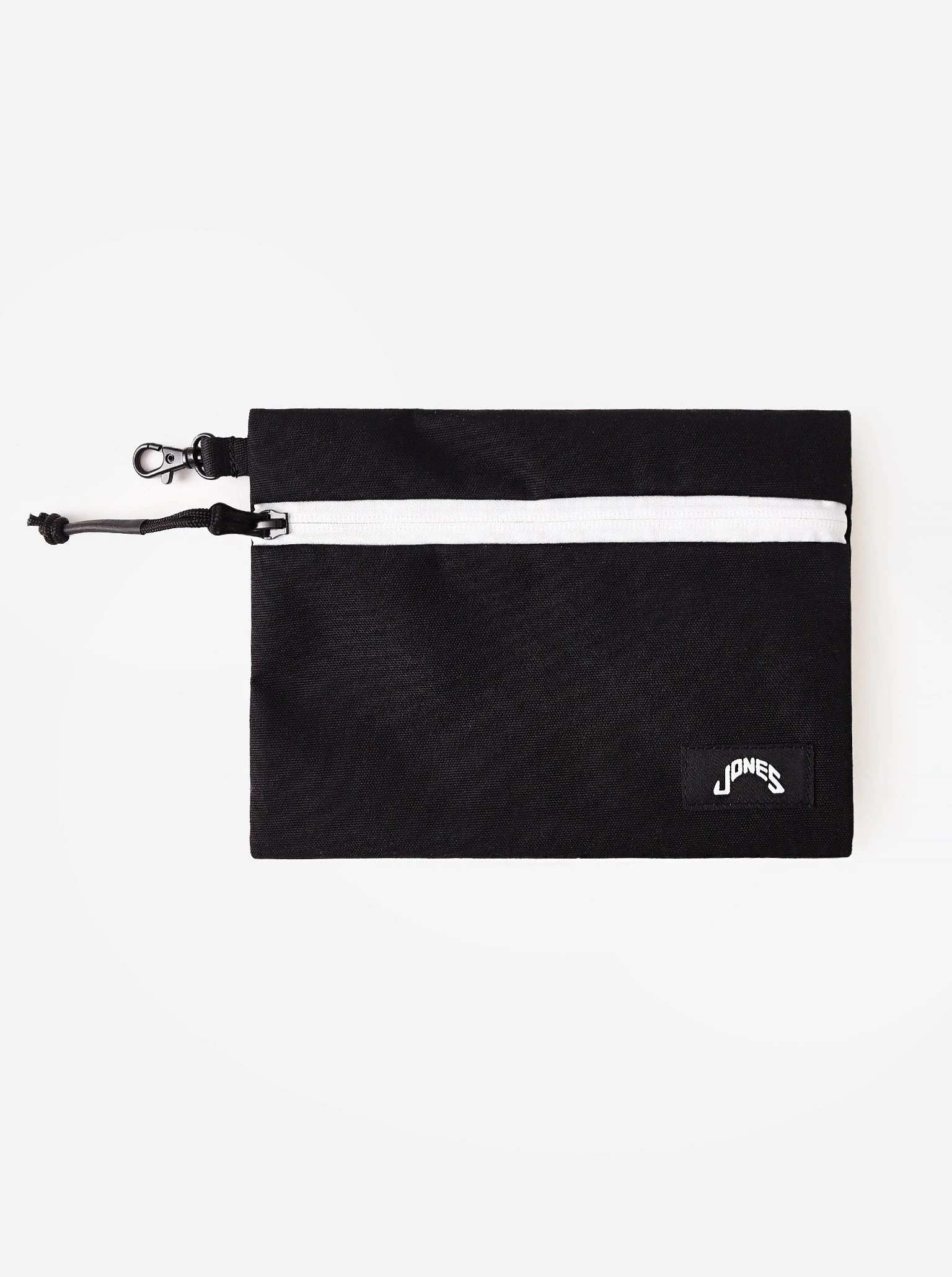 Slim and sleek multi-use zip pouch with a clip and brand motif.