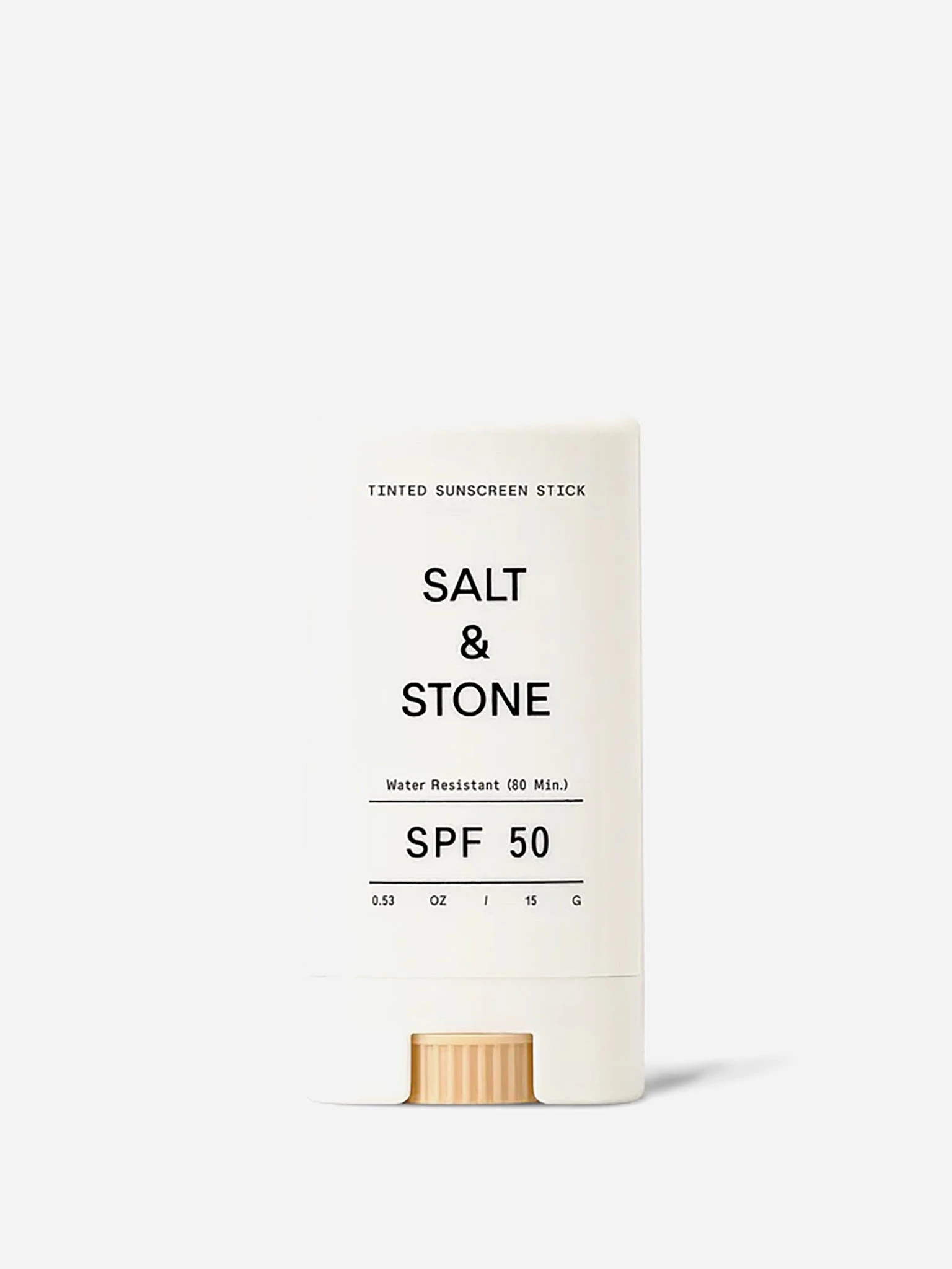 Water-resistant sunscreen stick with a natural tint for all skin tones.