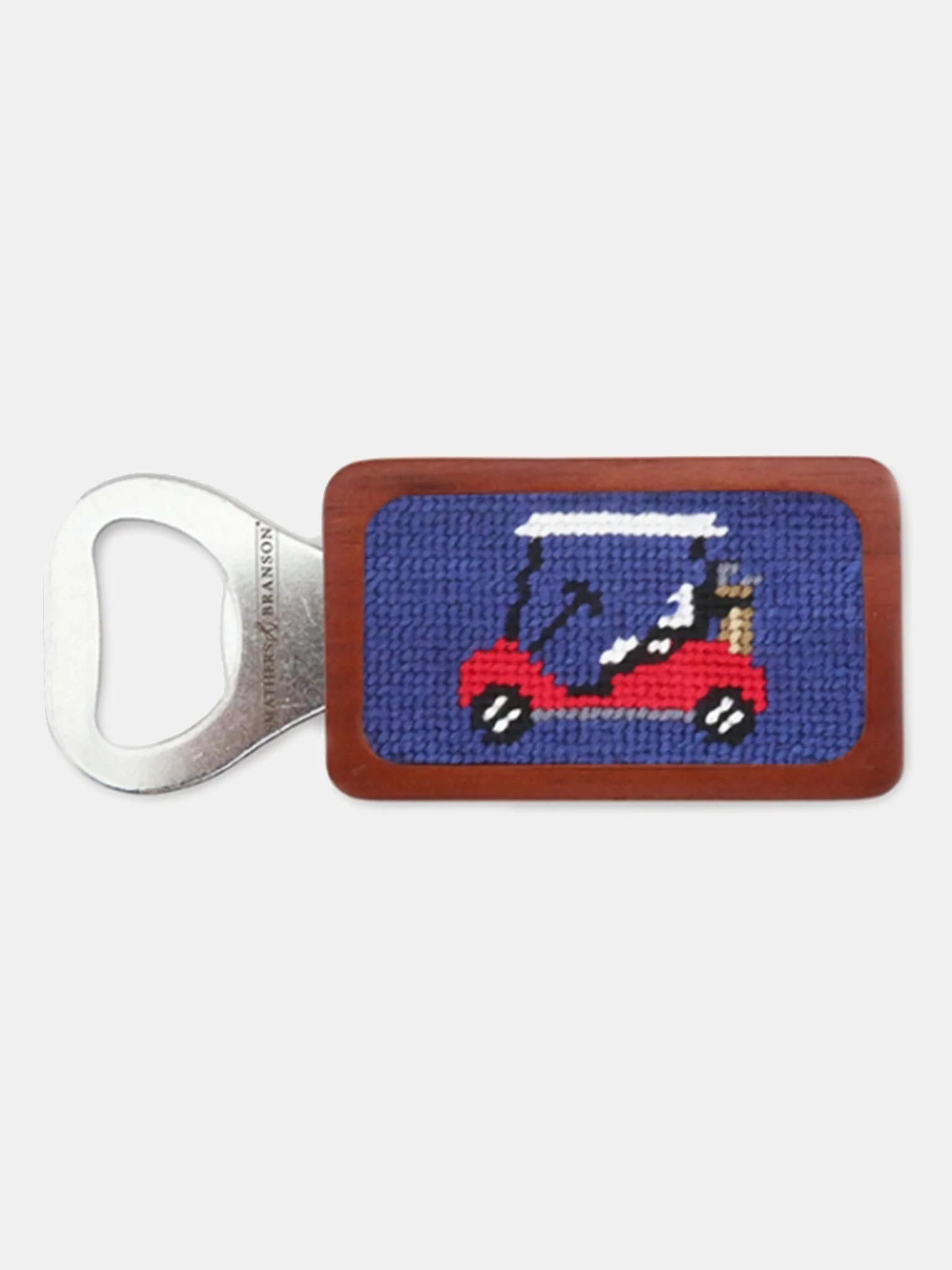 ?When on the lake, or really anywhere you plan to relax you’ll need the Smathers & Branson Golf Cart Needlepoint Bottle Opener to crack open your cold ones.