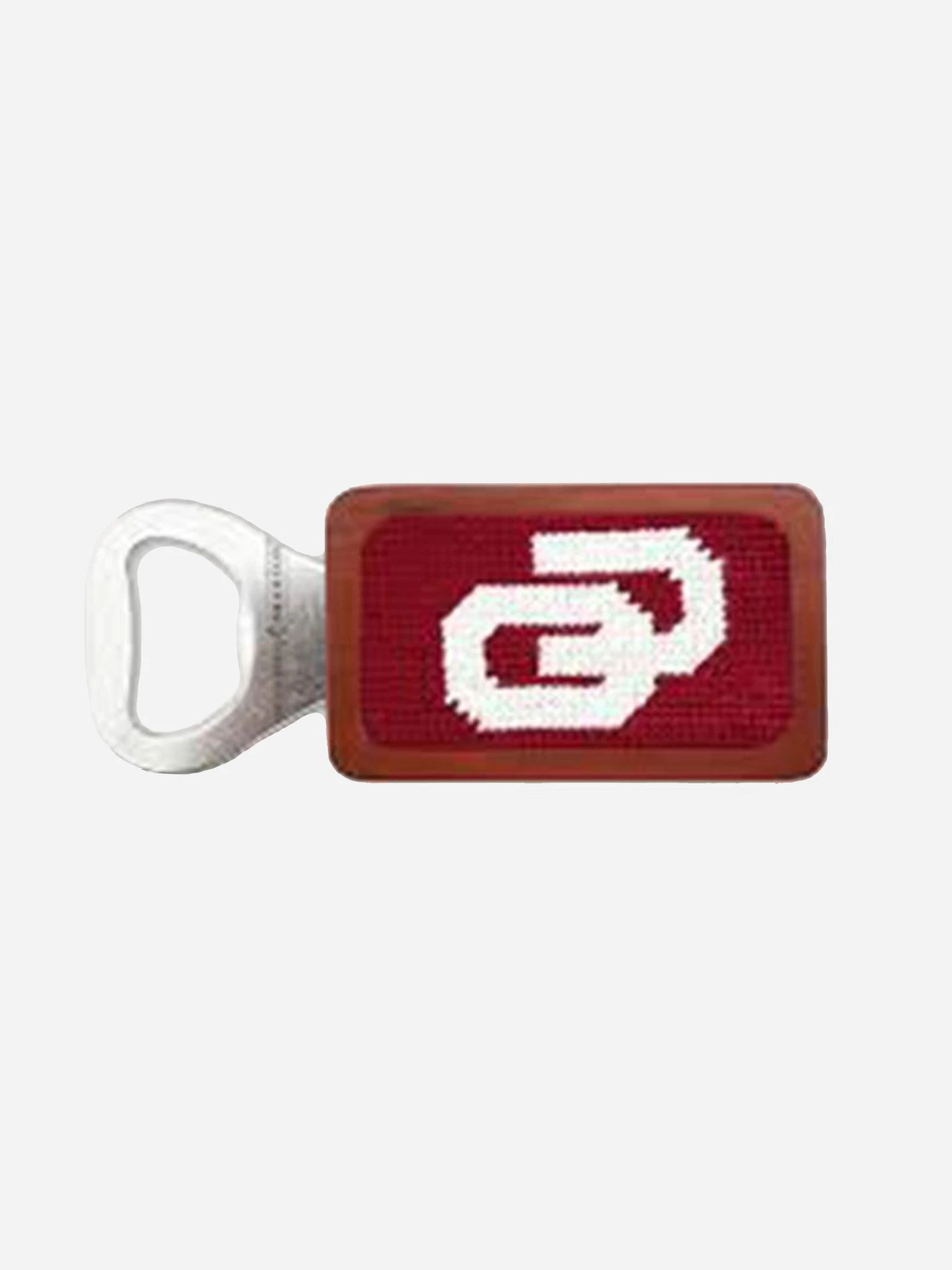 Oklahoma University needlepoint bottle opener with hidden magnets.