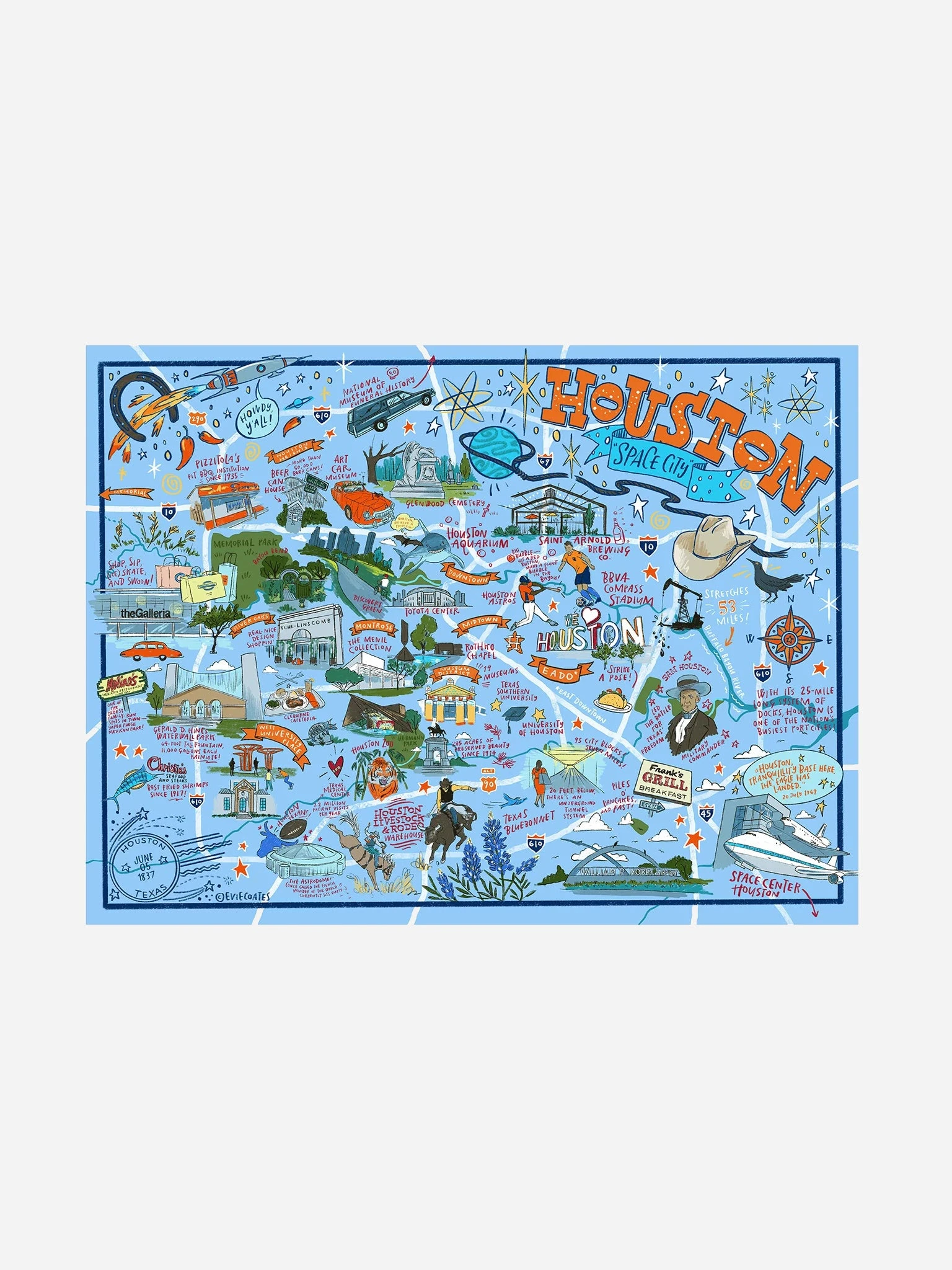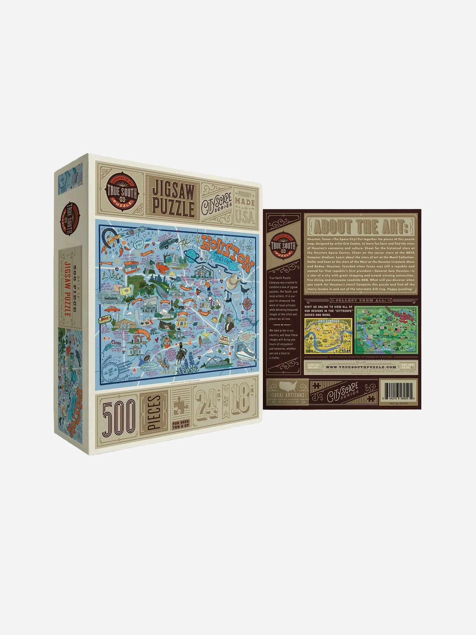 Houston, you won’t have a problem instead you’ll have a blast exploring the space city from indoors with the True South Puzzle Houston Illustrated Jigsaw Puzzle.